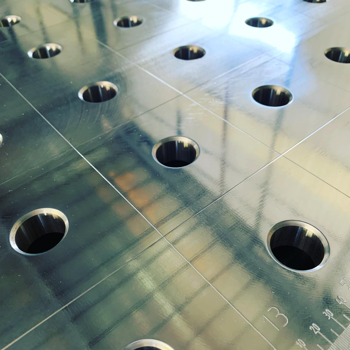 Nenáročným zákazníkům nabízíme výrobu jednoduché ocelové desky o rozměru 1400x750 mm a tloušťce 8 mm. Díry o průměru 16 mm jsou vypáleny s roztečí 50 mm. Materiál S355, váha 60 kg.